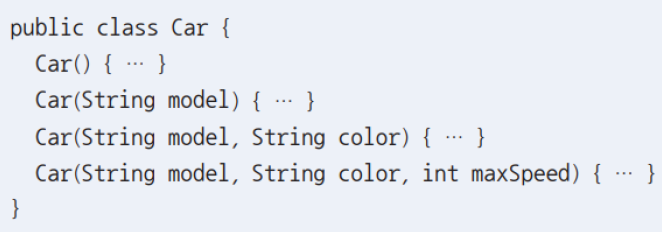 매개변수를 달리하는 생성자를 여러 개 선언하는 것