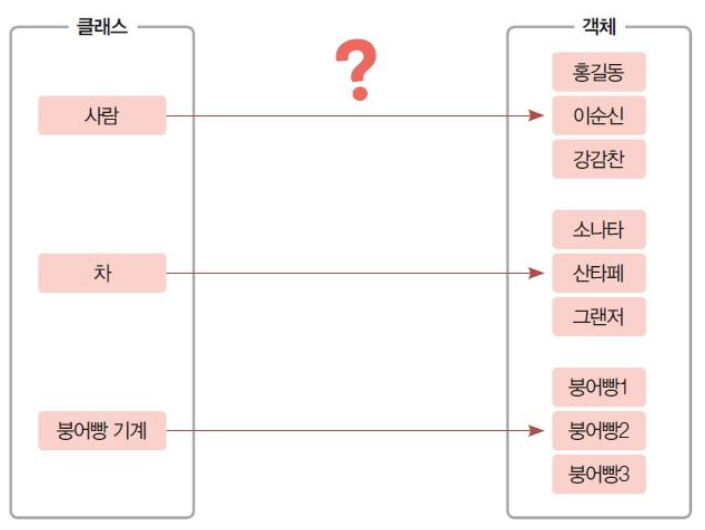 객체 지향 프로그래밍에서도 객체를 생성하려면 설계도에 해당하는 클래스가
