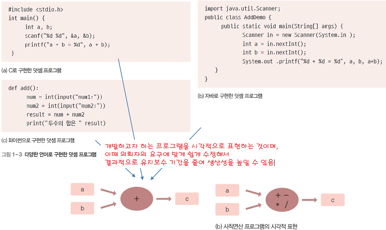 자바 Java C++ Visual Basic, C# 같은 다양한 프로그래밍 언어로 표현 가능