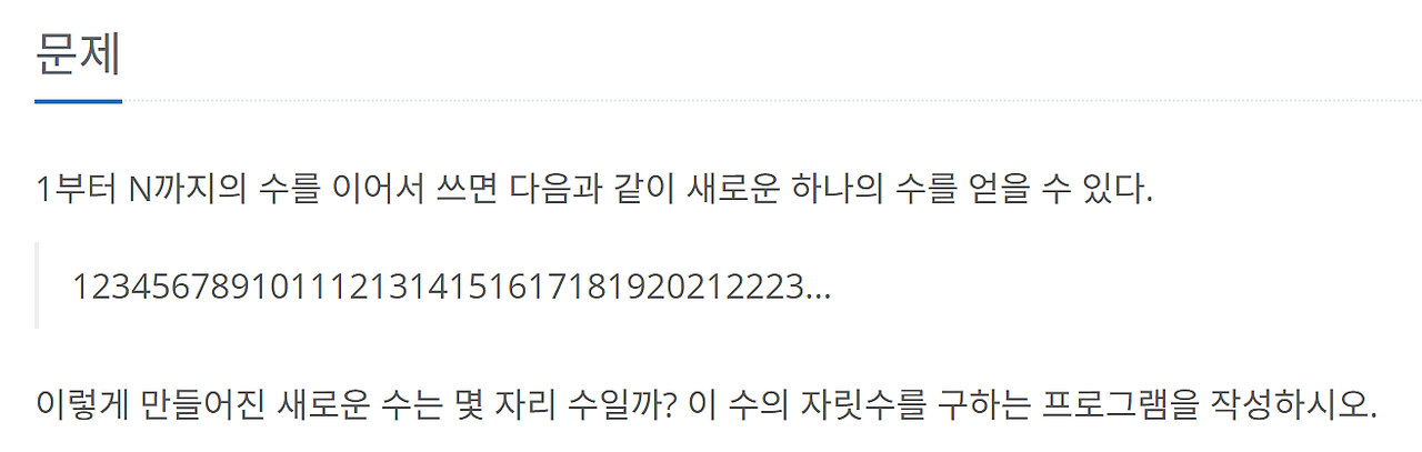 요약하자면 n을 입력한후 그 n까지 1부터 적어서 총 몇개까지 나오는지 구하는거다.