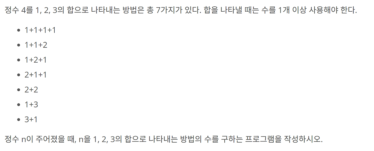 11보다 작은 정수 n을 입력하여 1,2,3 가지고 더하기할 수있는 경우의 수를 구한다.