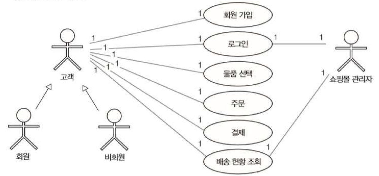 2. 액터: 사용자, 관리자(실선 - 연관관계)