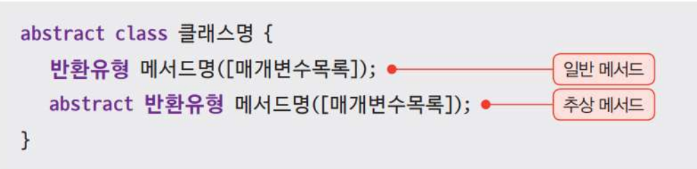 클래스에 추상 메서드가 포함되어 있으면 반드시 추상 클래스로 선언해야 함