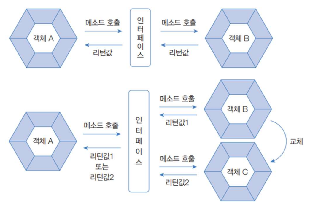 인터페이스는 참조 타입에 속하므로 인터페이스 변수에는 객체를 참조하고 있지 않다는 뜻으로 null을 대입할 수 있음 :약한 객체 결합