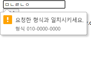 <input type="text" pattern="(010)-\d{3,4}-\d{4}" title="형식 010-0000-0000">