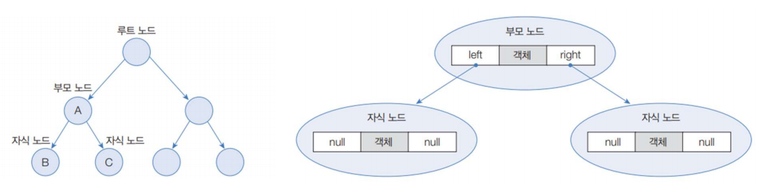 여러 개의 노드가 트리 형태로 연결된 구조. 루트 노드에서 시작해 각 노드에 최대 2개의 노드를 연결할 수 있음