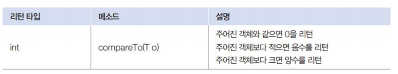 Comparable : 자기자신과 매개변수 객체를 비교한다.