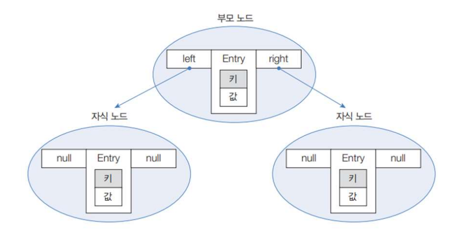 부모 키 값과 비교해서 낮은 것은 왼쪽, 높은 것은 오른쪽 자식 노드에 Entry 객체를 저장