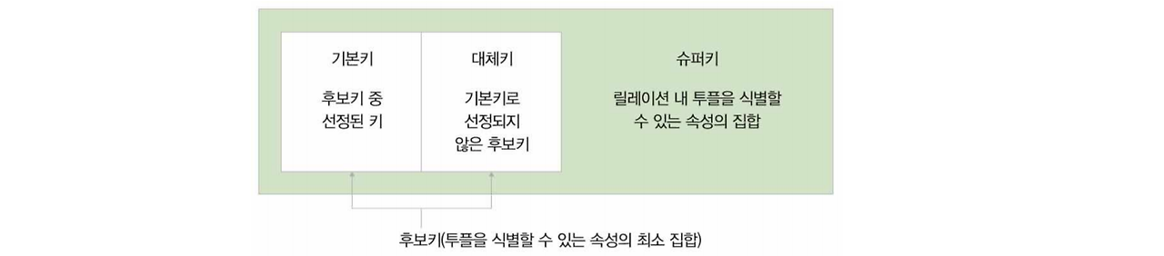 이는 릴레이션 내의 각각의 투플을 유일하게 식별할 수 있는 속성들의 집합으로 볼 수 있음