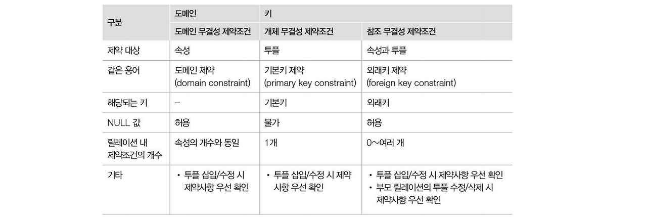 테이블에 정확하고 유효한 데이터를 유지하기 위해 특정