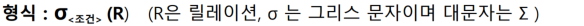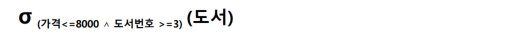 형식 : σ<복합조건> (R) (R은 릴레이션, σ 는 그리스 문자이며 대문자는 Σ )