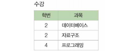 => 서로 다른 테이블을 연산을 통해 수강이라는 집합이 나왔다.