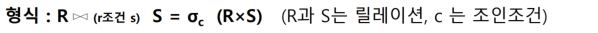 이항 연산자 : 릴레이션1 연산자<조건> 릴레이션2