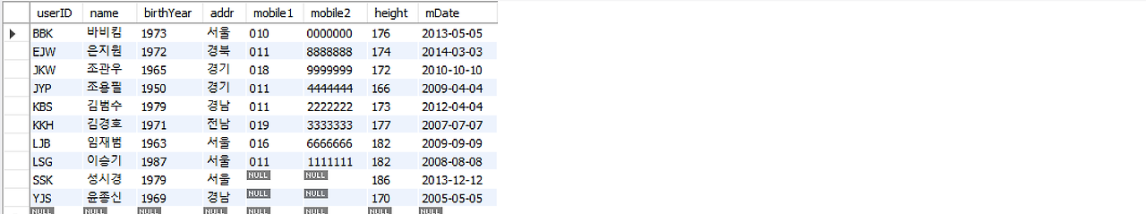 insert into usertbl values ('sym2','yoomi',2000,'기','010','12345678',170,'2024-01-17');