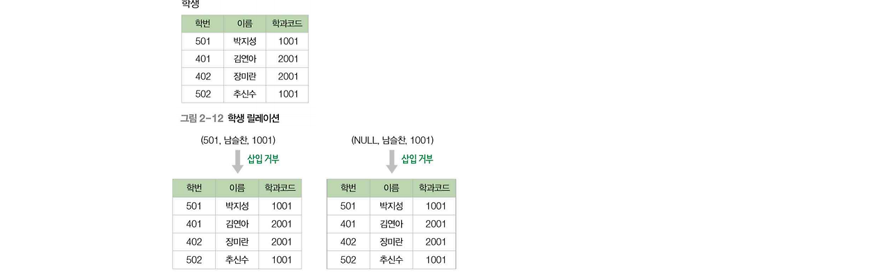 삽입 : 기본키 값이 같으면 삽입이 금지됨.