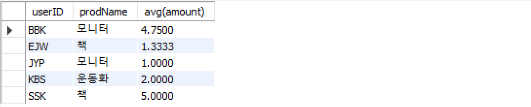 buytbl에서 사용자 아이디별 총 구매액을 출력