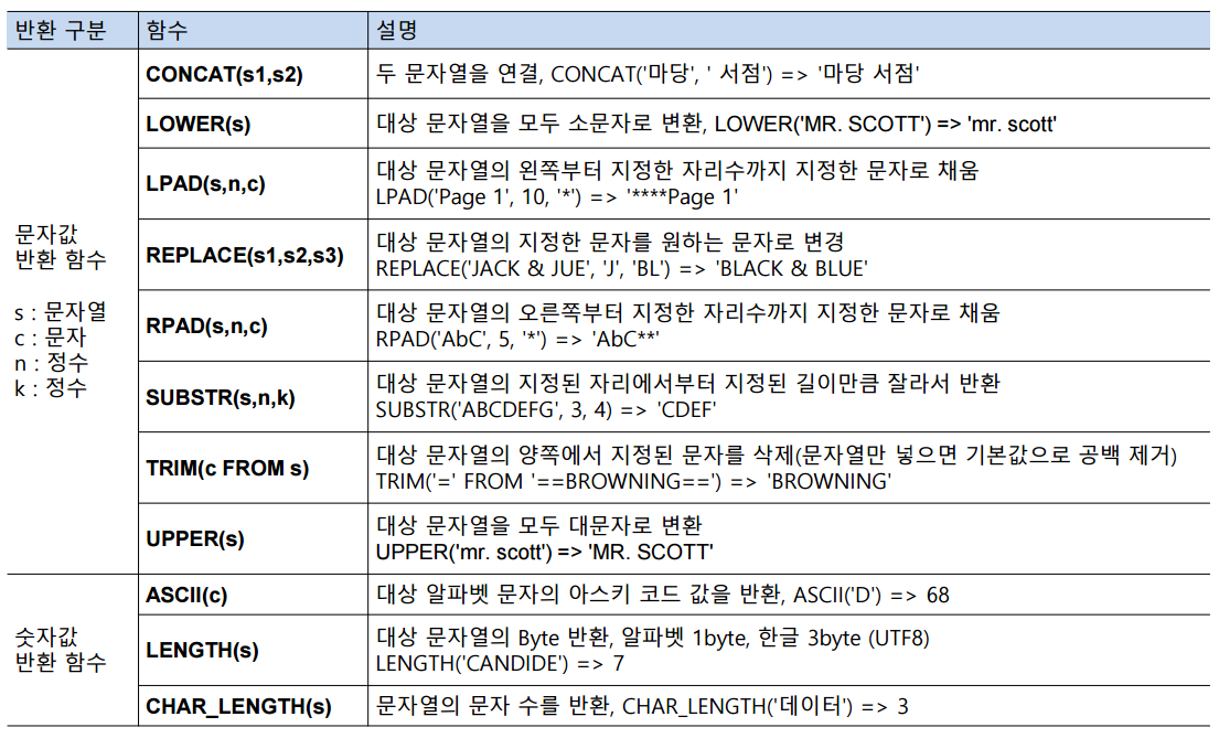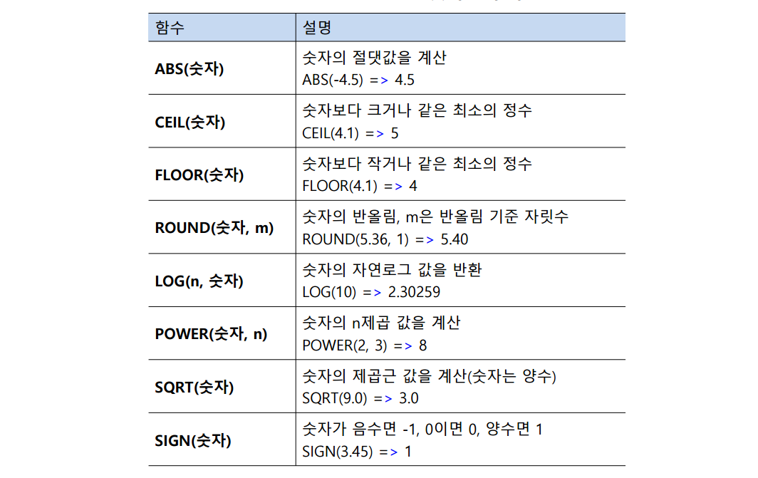 내장함수에 대해 배웠다. 숫자 계산과, 문자열을 다루고 날짜,시간 함수를 배우고 예제를 풀었다.