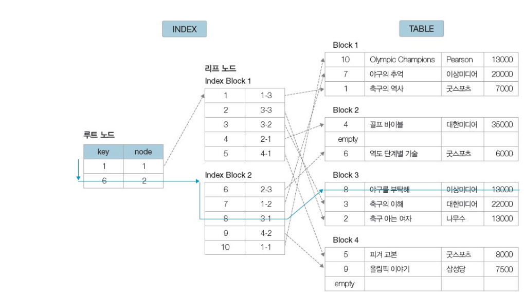 인덱스부여하고 검색해서 뽑아옴, 트리구조사용