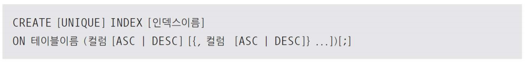 인덱스는 테이블에서 한 개 이상의 속성을 이용하여 생성함