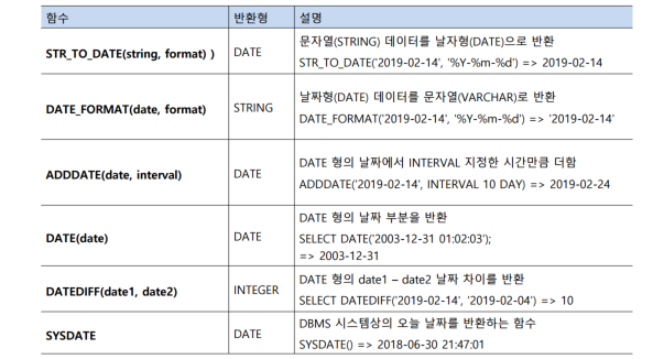 내장함수에 대해 배웠다. 숫자 계산과, 문자열을 다루고 날짜,시간 함수를 배우고 예제를 풀었다.