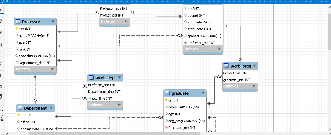대학교 대학원에대한 다이어그램을 모델링했다. 예시대로 테이블을 만들고 관계를 연결해보려고했지만 쉽지않았다.