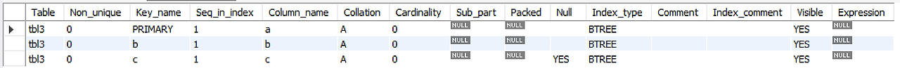 show index from tbl3;