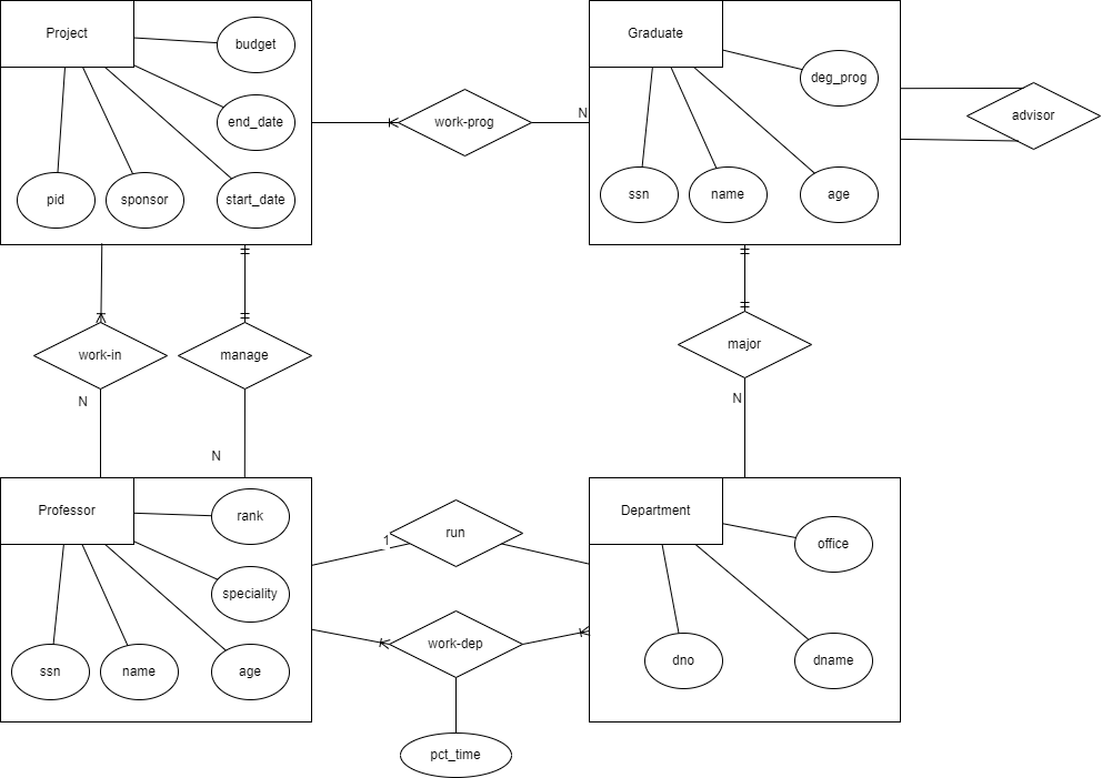 예를 들어 과제는 '한 교수(연구책임자라고 한다)에 의해 관리(manage)된다'라는 한 문장을 보고도 단순히 한 교수니까 1 대 다 라고 생각하지 않아야한다. 각각의 개체를 생각하고 1 : * , 거꾸로 * : 1 을 대입해보고 어느것이 적용이 되는지, 둘 다 적용되는지, 1 : 1 만되는지, 0이어도 되는지를 찾아야한다.