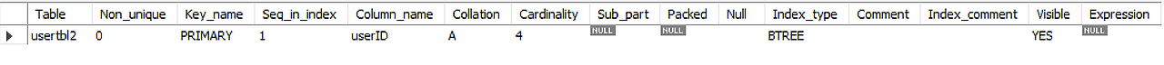 show index from userTbl2;