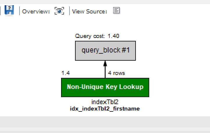 인덱스 만든 후 조회: 딱봐도 쾌적한 초록색이다. Query cost: 1.40, 4rows만 확인했다.