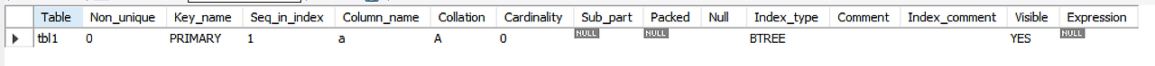 show index from tbl1;