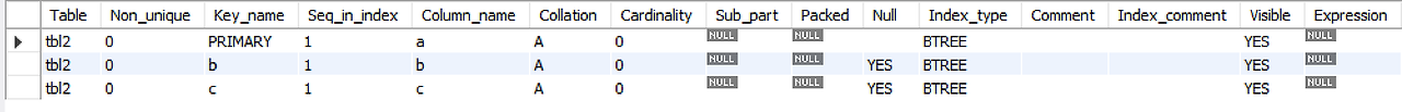 show index from tbl2;