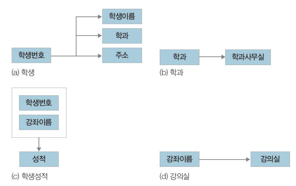 학생수강성적 릴레이션의 경우 학생 정보(학생번호, 학생이름, 주소, 학과)와 강좌