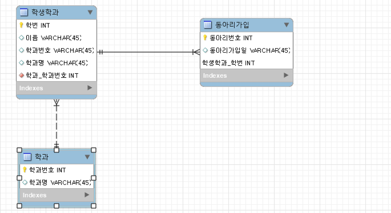 학생학과를 떼어내고 원래 이어져있었던 동아리가입과 관계를 이어준다.