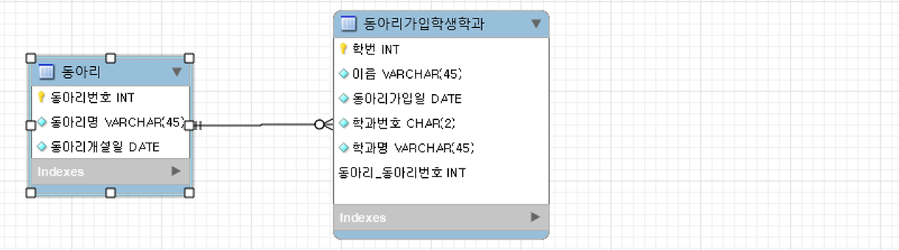 동아리 테이블과 동아리가입학생학과 테이블로 나뉘었다.