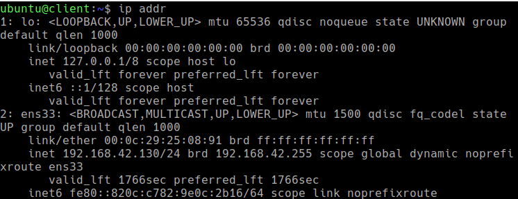 우분투클라이언트 아이피 확인