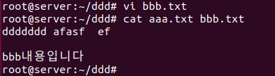 명령어 뒤에 여러 개의 파일명을 나열하면 파일을 연결하여 내용을 화면에 출력