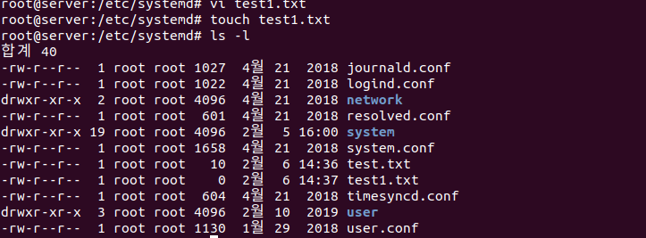 상위로 간뒤에 etc/systemd로 이동해라 : 상대경로