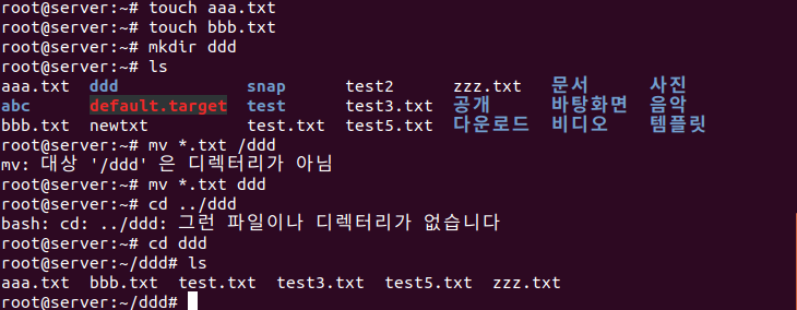 aaa.txt bbb.txt 만들고 ddd폴더로 move