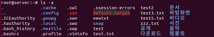 ls -a 숨긴파일까지 보기
