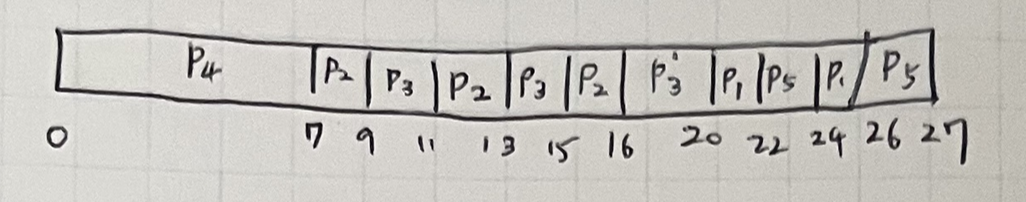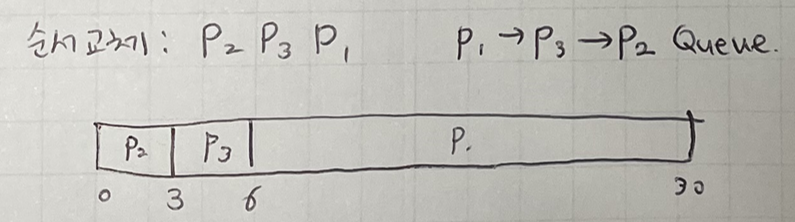 순서교체: P2 P3 P1(수행시간이 짧은 순서)