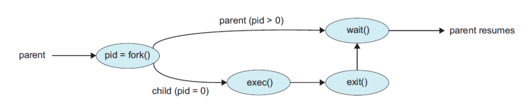 부모가 fork해서 pid가 0보다 큰경우 wait() , pid가 0인경우 child이기 때문에 exec()실행하고 exit()