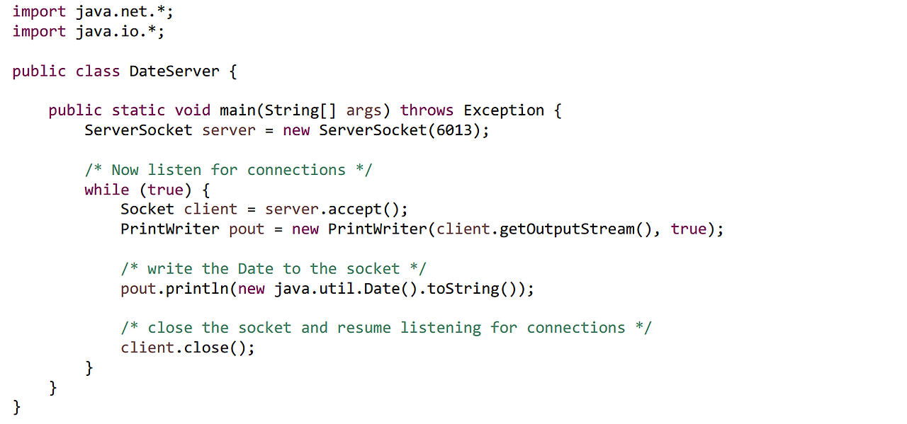 ServerSocket server = new: 서버 객체 생성, 6013번