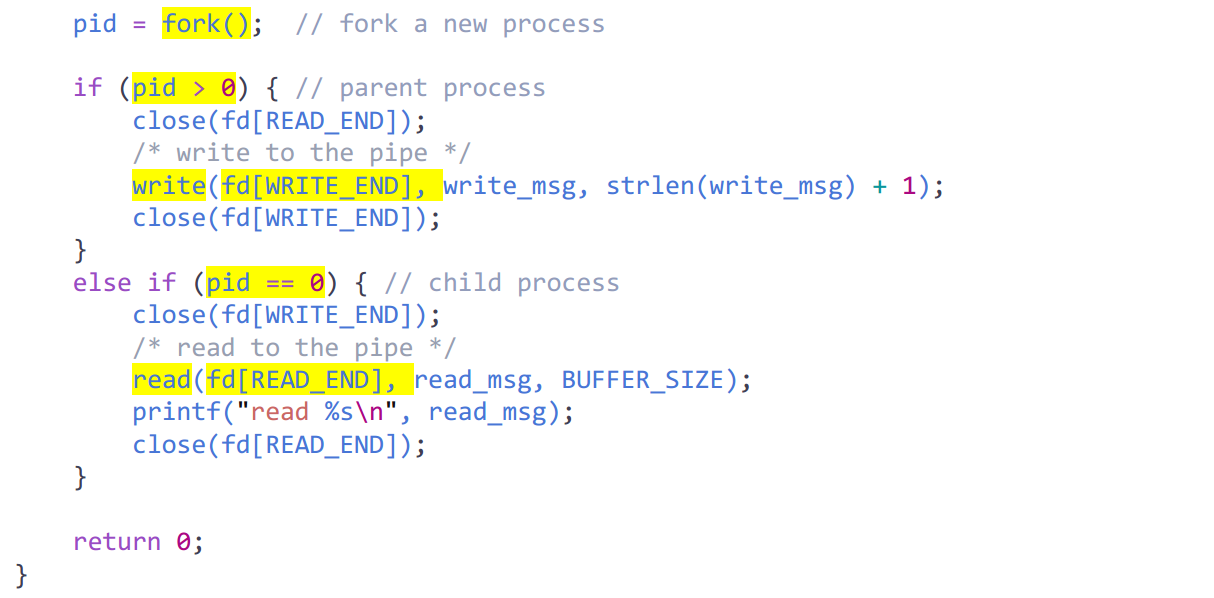 if(pid > 0) (pid == 0) 으로 parent child 구분