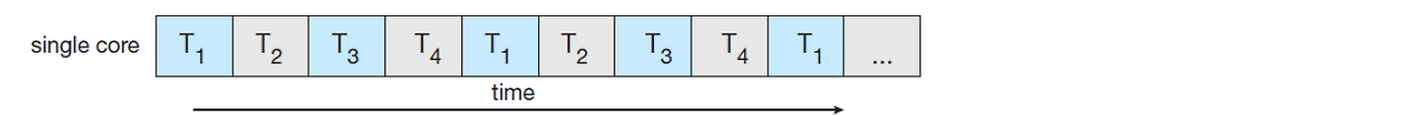 싱글 코어: 스레드를 interleaving (끼워넣기) 한다.