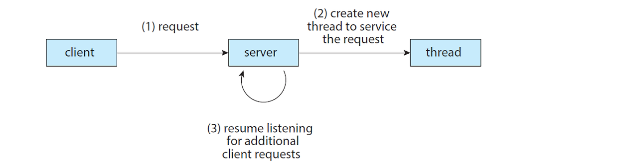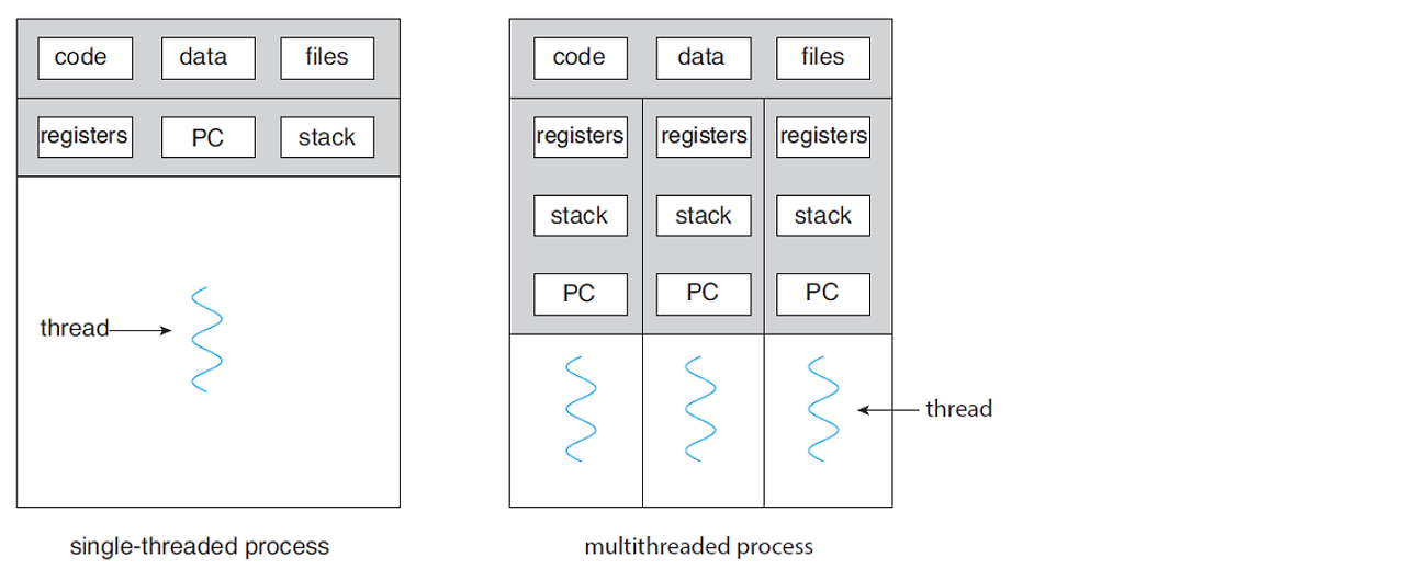 일반적으로 하나의 제어 쓰레드를 가지고 있는 중량 프로세스는 한번에 한가지의 작업만을 수행함, 만약에 하나의 프로세스에 여러개의 쓰레드가 존재한다면, 프로세스는 동시에 하나 이상의 작업들을 수행할 수 있다.