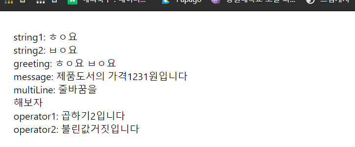 변수를 표시 할 땐 ${변수} 를 사용하자