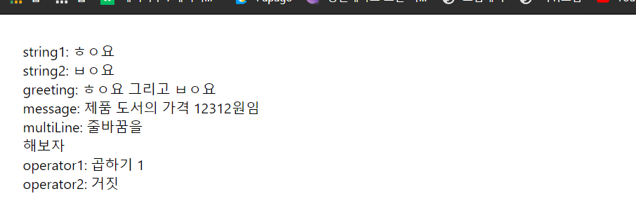 변수를 표시 할 땐 ${변수} 를 사용하자
