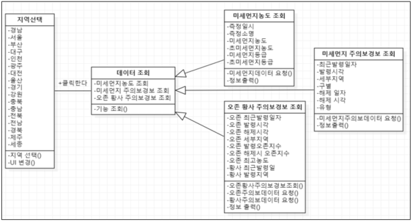 대기 정보알리미 웹 프로그램의 UML 다이어그램이다