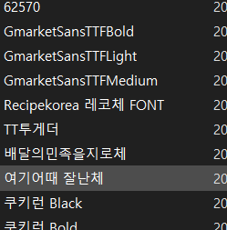 드래그해서 넣어주기만 하면 끝 쿠키런체와 지마켓체를 사용한다