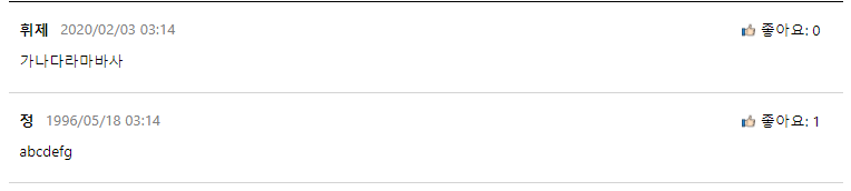 이건 댓글 데이터베이스 칼럼들